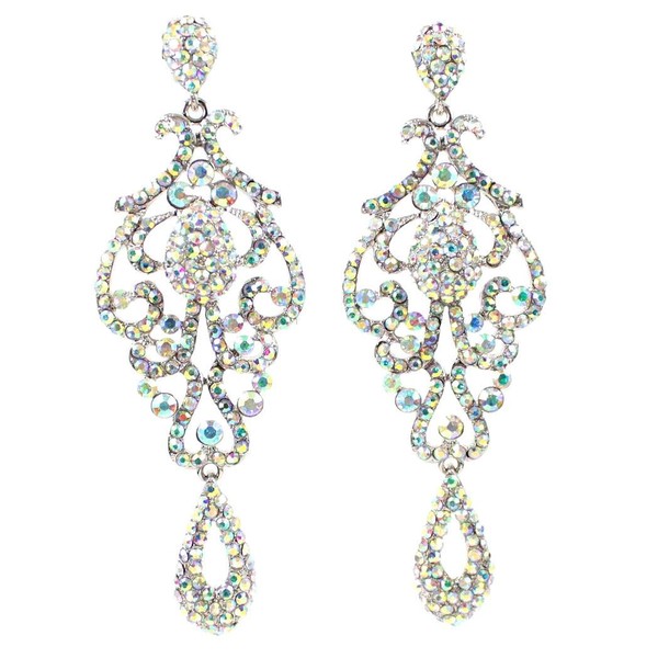 You are looking at stunning dangle chandelier earrings. Sparkling first class AB white Genuine Austrian Rhinestones are set on a beautiful silver tone metal. These earrings shine a lot! Thanks for looking!