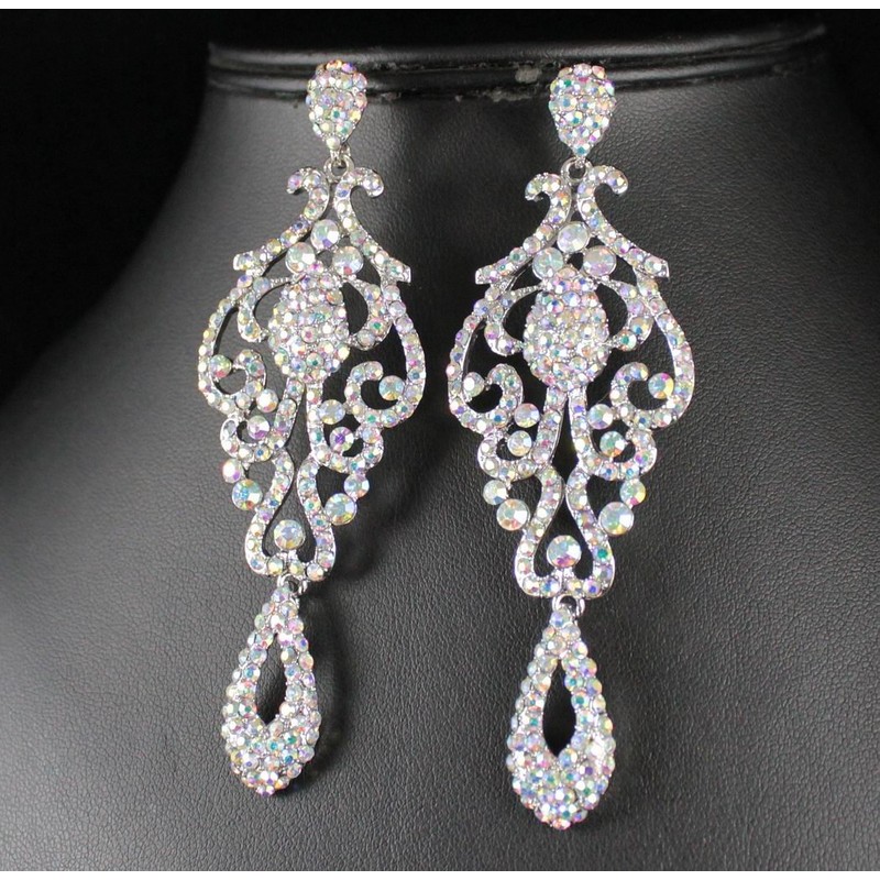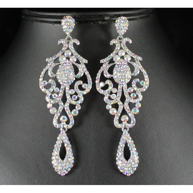LARGE PAGEANT CRYSTAL RHINESTONE CHANDELIER DANGLE EARRINGS PROM E2090AB AB WHITE