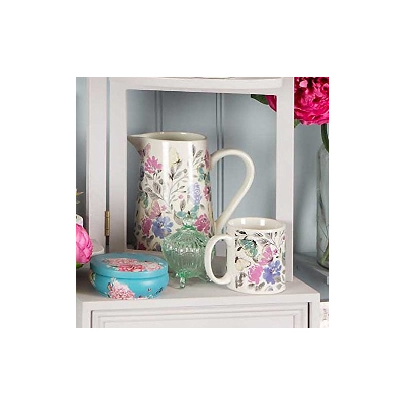 Large Pink and Purple Flower and Butterfly / Papillon Design Ceramic Jug / Vase / Pitcher