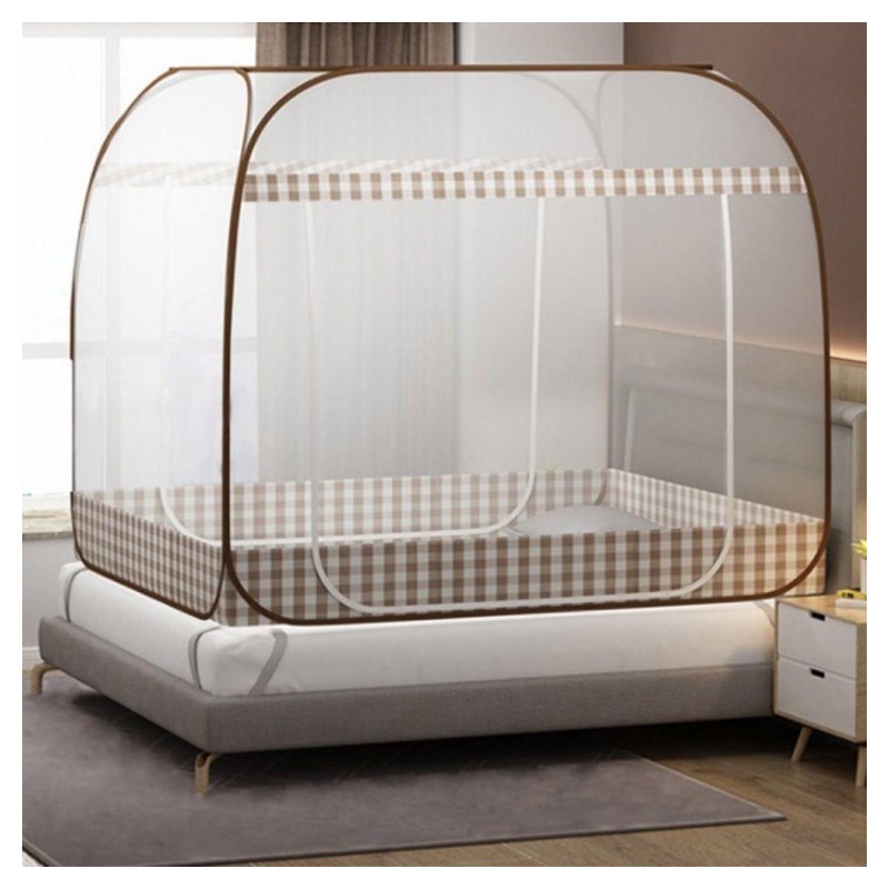 Large Pop-Up Square Mosquito Net Canopy with Floor and Double Doors Brown, 3+ Person