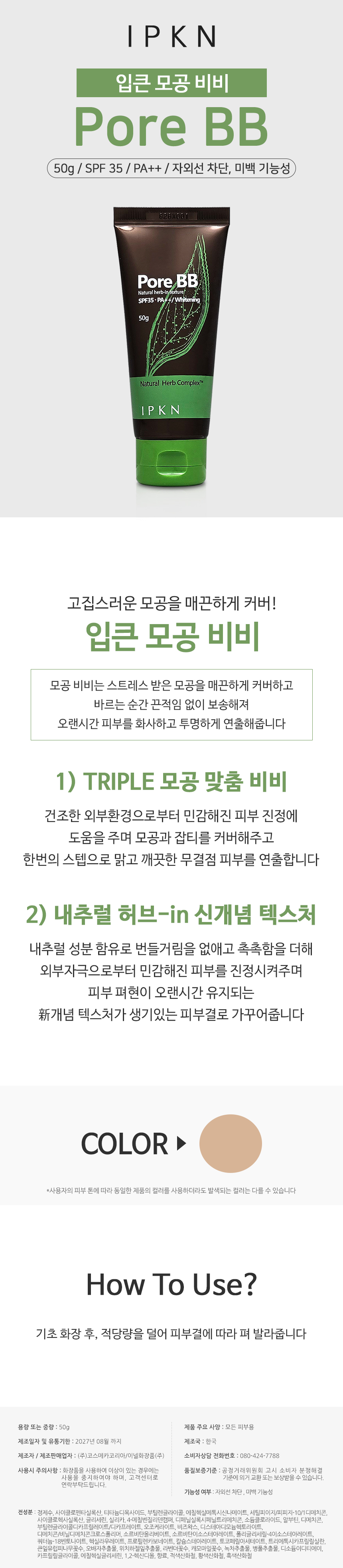 Large Pore BB Cream 50g / 입큰 모공 비비 50g