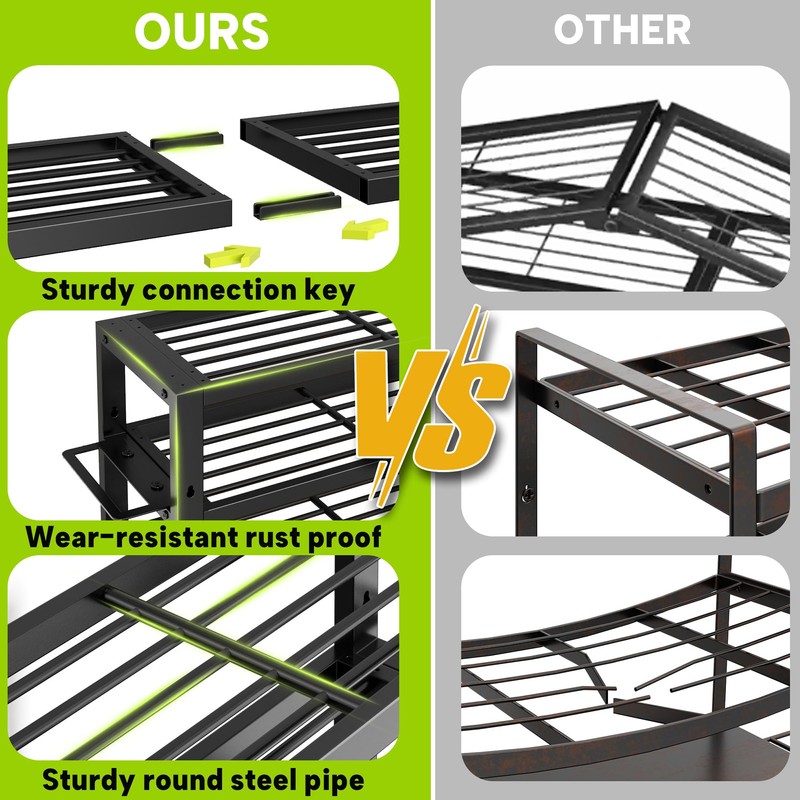 - Four Layer Large Capacity Power Tool Organizer: Our tool organizer measures 35.4 x 8.7 x 16.5 inches, which is taller and wider than traditional tool racks. The top three levels are designed to accommodate heavy tools such as toolboxes, charging stations, and large power tools. The bottom layer can accommodate up to eight rechargeable drills, while the side frame has space for placing pliers and screwdrivers