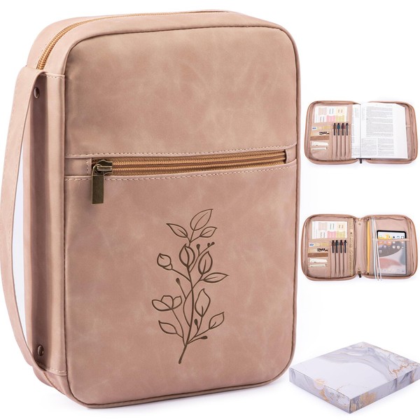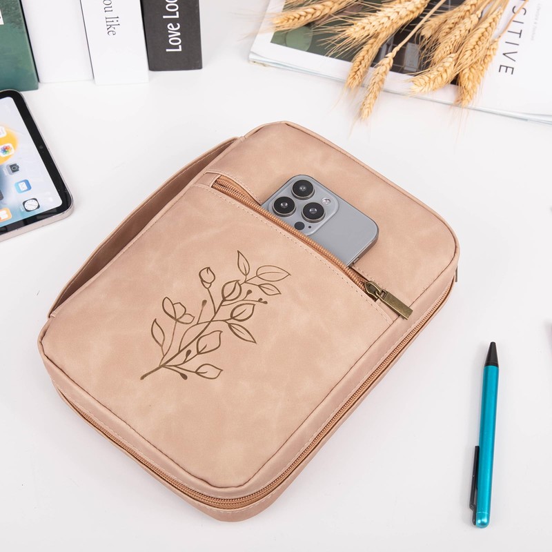 - Versatile - Its exquisite appearance and compact size make carrying your book easy and comfortable anywhere. This Bible case is a great organizer for your Bible study items. It can protect your Bible, journals, notebooks, and iPad. Also, it's a great gift idea for friends or family who love to read the Word of God.