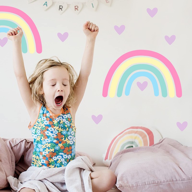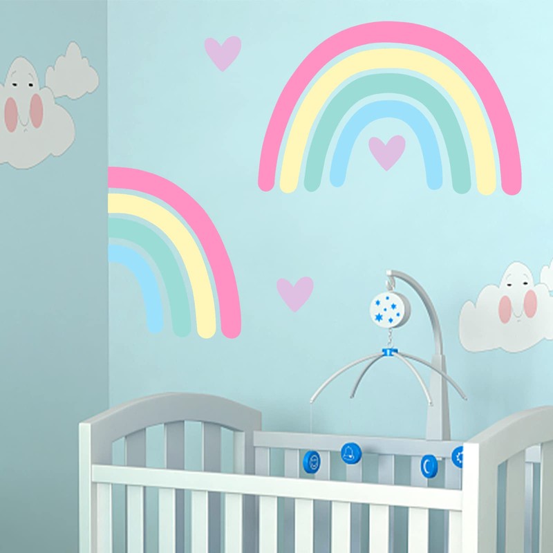- PACKAGE INCLUDED: 2 sheets includes 4 large rainbow and a heart shape are in the package. There are separate elements, so you can make your own composition on the wall. Let your creativity go wild, decorate your dwelling house so that it will appear to be an elegant and comfortable world.