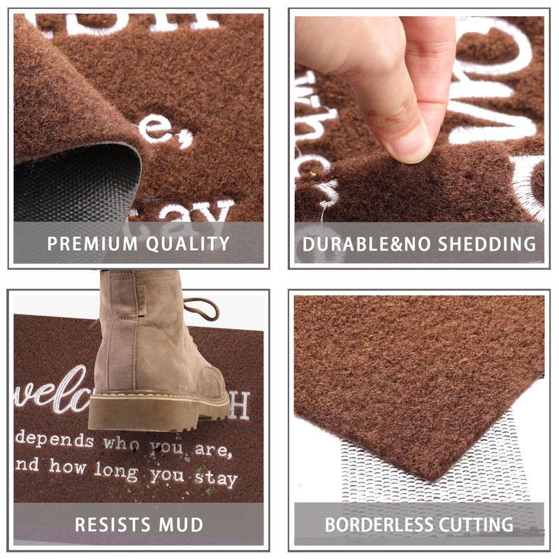 - SOLID MANUFACTURE: Our door mats for outside entry is made of Polypropylene.Textured rubber lining prevents skidding and provides maximum grip on the front door, weather-resistant and dense fibrous villi is great for outdoor or indoor use