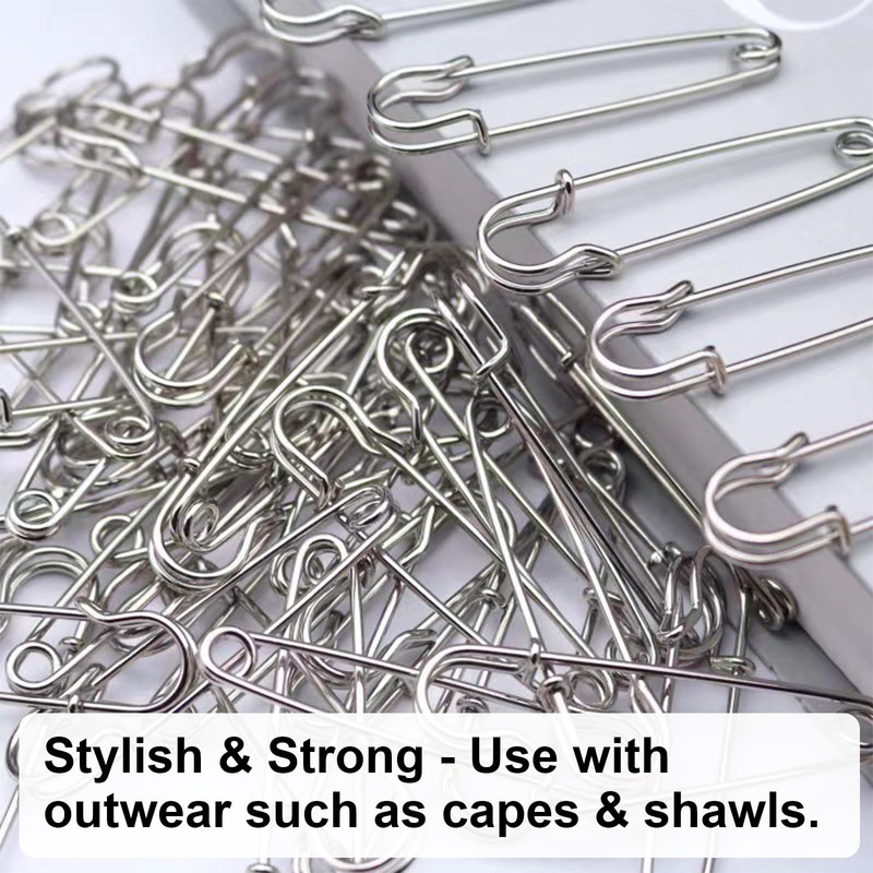 - 【Wide Applications】Large enough to be used with knitting projects, hold knitting stitches or secure fabrics together during sewing / washing. These safety pins are good for craft making, kilts, blankets, mattress pads, clothing, jewelry, knitting, tablecloth, nappy pins, coats, jacket