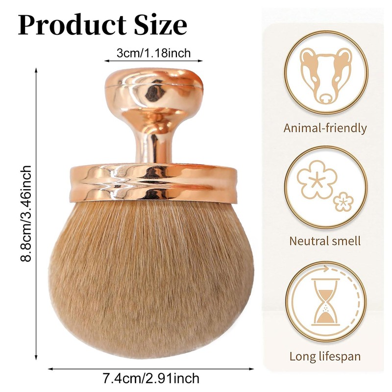 1. Multi-Purpose Luxury Tool A versatile all-in-one brush for flawless tanning, blusher application, foundation blending, contouring, and setting powder. Dense, ultra-soft bristles ensure streak-free, even coverage while minimising product waste.