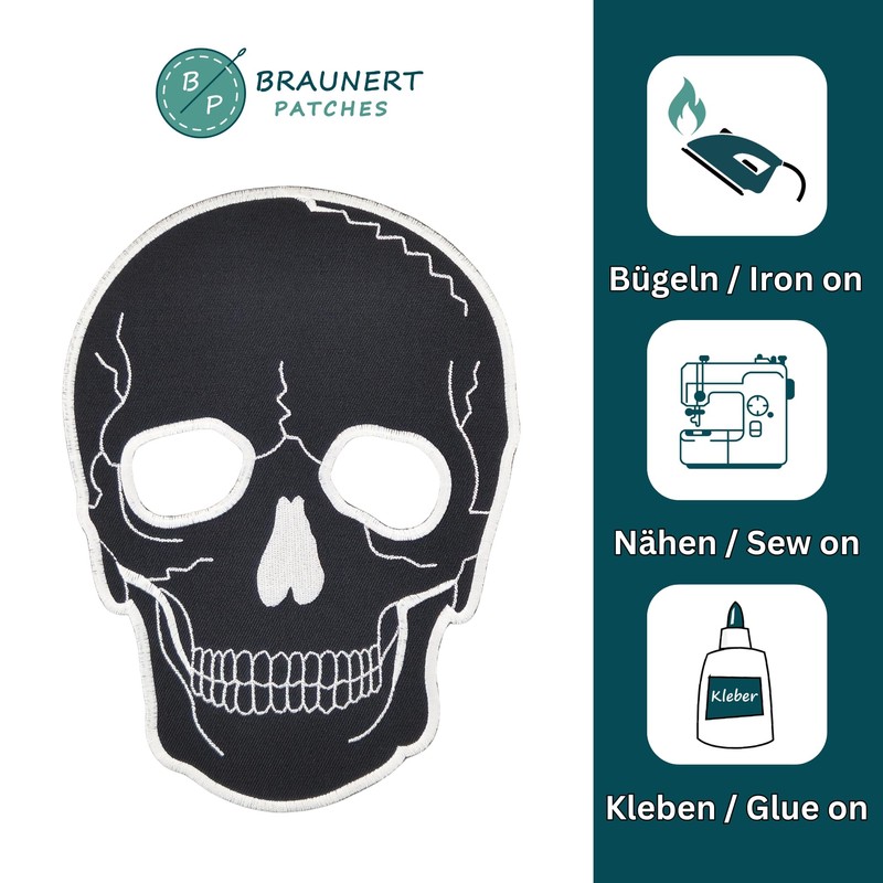 Large Skull Back Patch Black - 15.3 x 20.8 cm - Embroidered Patch Biker XXL Back Patch Skull Patch Back Patch for Motorcycle Jackets Cows Leather Vests - High Quality Embroidery