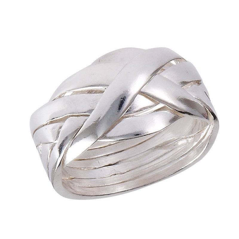 Large Sterling Silver 6-Band Weave Puzzle Ring Size 7