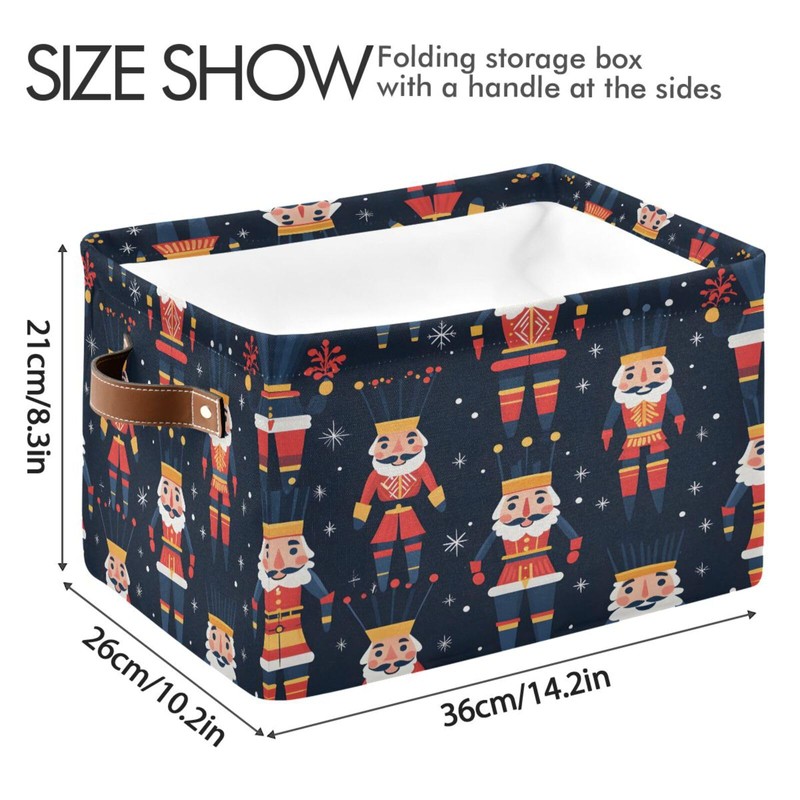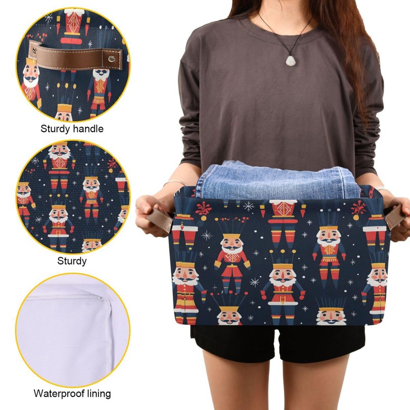 Large Storage Basket Christmas Nutcracker Black Foldable Storage Box Organizer Bins with Handles for Bedroom Home Office