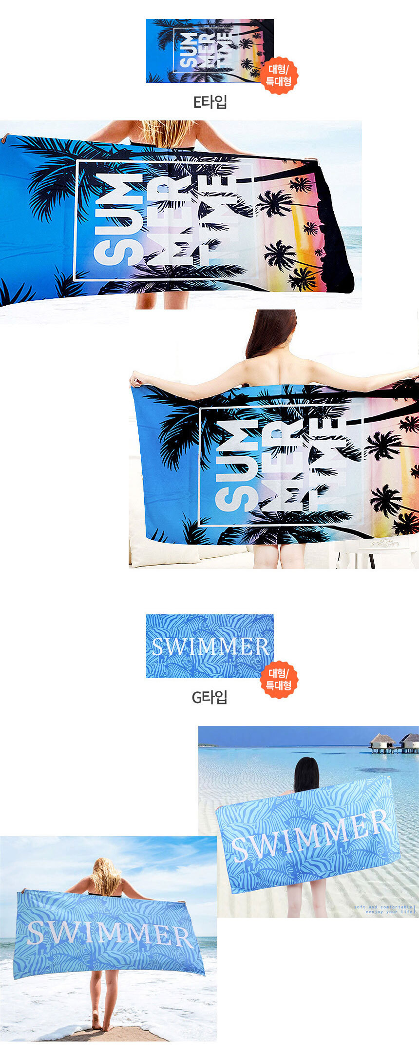 Large Summer Beach Towel for Water Play & Swimming Bath Type D
