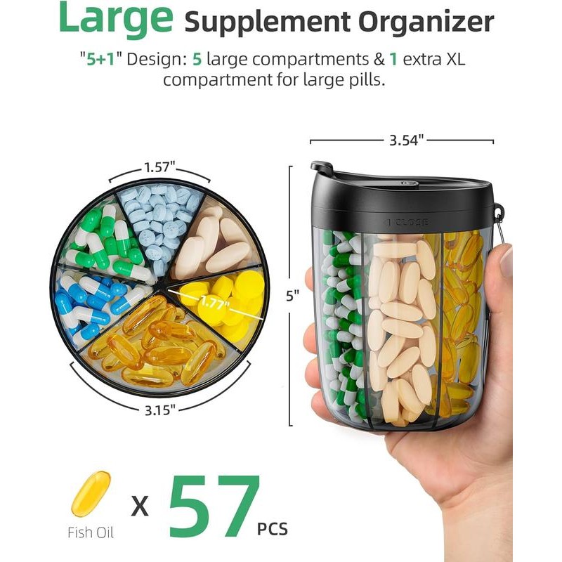 Large Supplement Organizer Bottle, Holds Plenty of Vitamins in 1 Monthly Pill Dispenser with Anti-Mixing & Wide Openings Design, Easy to Retrieve Meds, includes 20 Pcs Stick-on Label Healthcare Aid