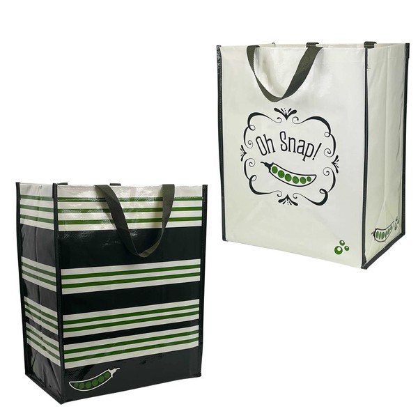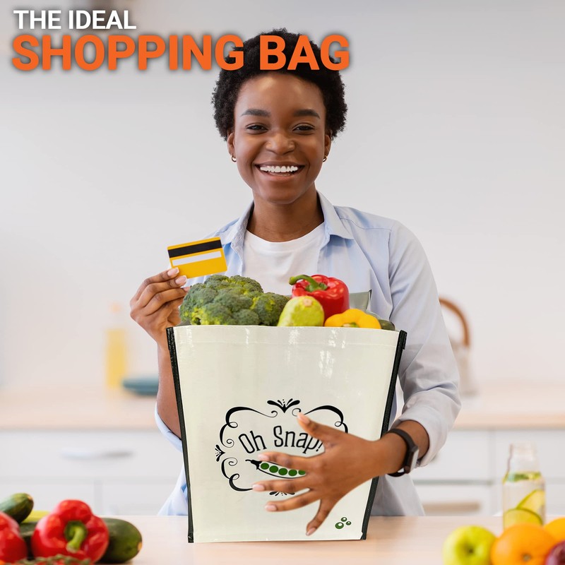 - The coated polypropylene woven material of this grocery tote bag is a host of features built to protect your food and water while you're on the go with reinforced stitching throughout
