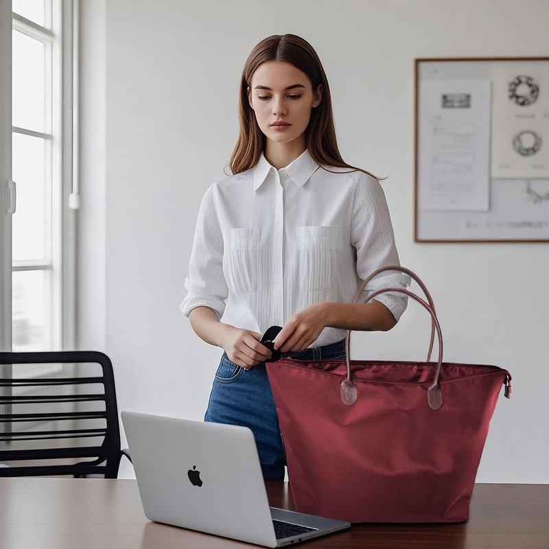 Large Tote Bag for Women - Lightweight Foldable Shoulder Bag with Zipper, Stylish Hobo Handbag for Weekend, Travel, Shopping & Work (BURGUNDY)