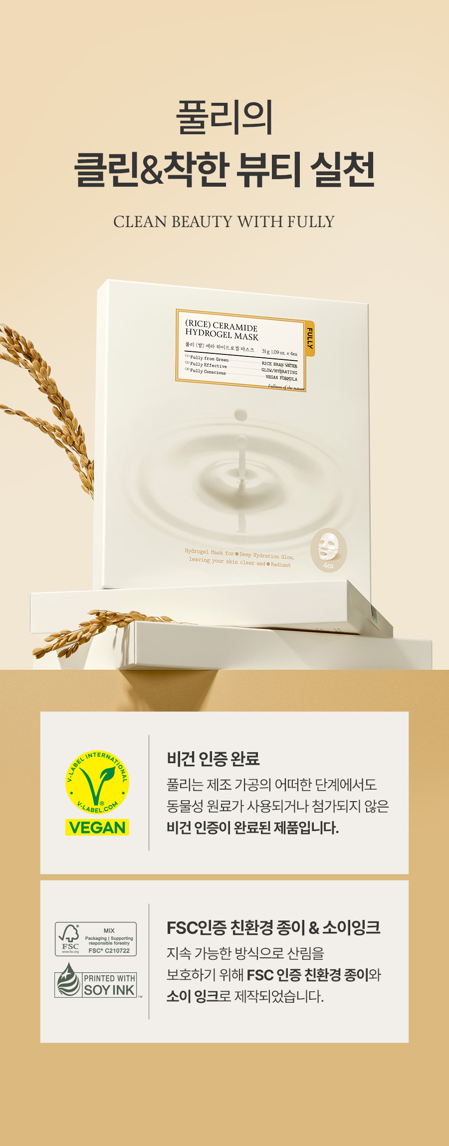 [대용량구성] 비건 풀리 쌀 세라 하이드로겔 마스크 4개입*6 (총 24매입)