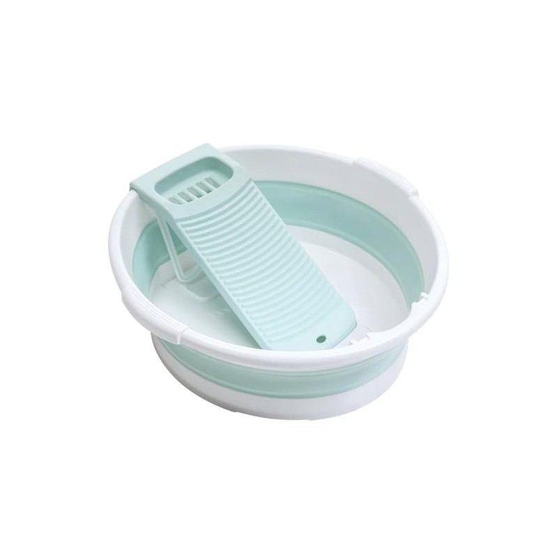 Large Washboard Basin for Hand Washing Clothes,Collapsible Basin for Hand Washing Clothes,Portable Laundry Basin,Wash tub Laundry with Scrubber (Light Green)