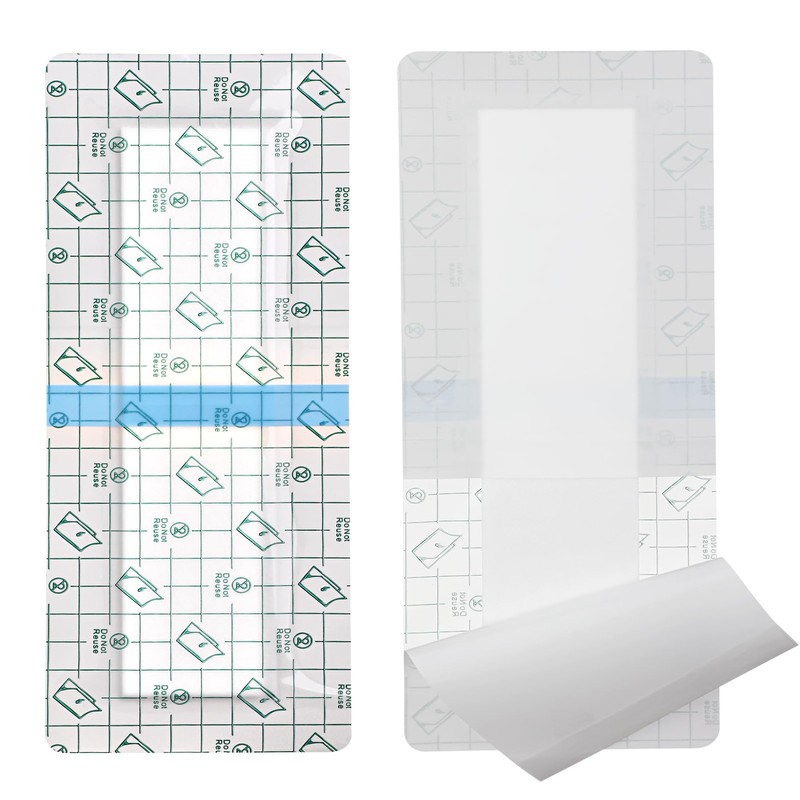 - Keep Knee Incision Dry: Made of high quality material, consists of PU film, adhesive and release paper. The center gauze pad will absorb any oozing or bleeding from the fresh scar, seals around edges beautifully, waterproof and no leaks. The knee surgery adhesive bandage keeps your incision dry enough in the shower and does not stick to the surgical dressing, only to the surrounding skin. The waterproof Wound bandage allows you to shower freely and resume your normal life with no worries.