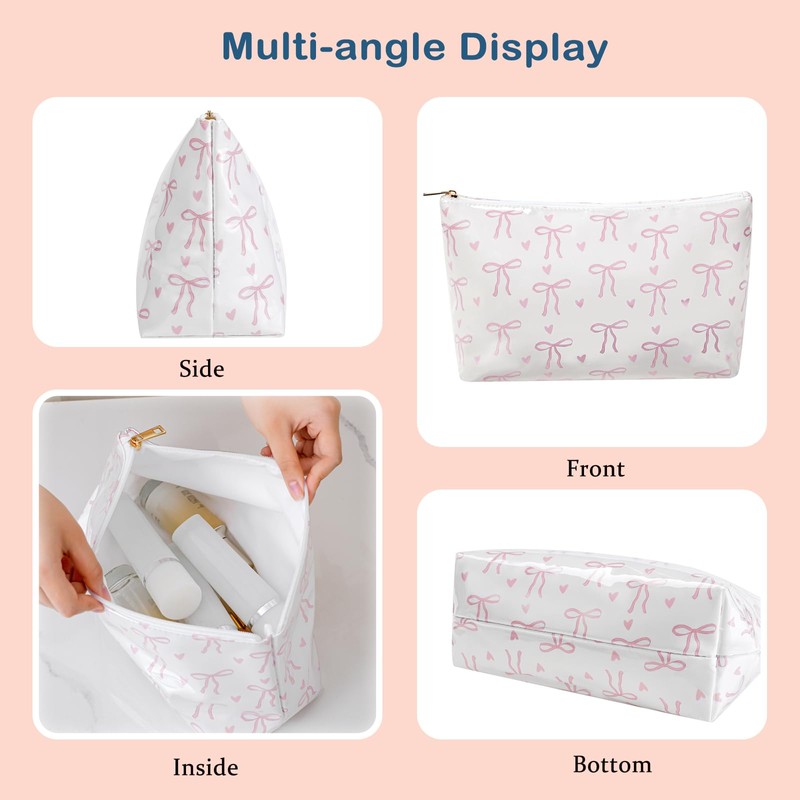 Large Waterproof PVC Beach Pool Makeup Bag with Bow Pattern, Cute Cosmetic Accessories Pouch with Zipper, Coquette Carry-on Travel Toiletry Bag for Women Girls(01Pink Bow)