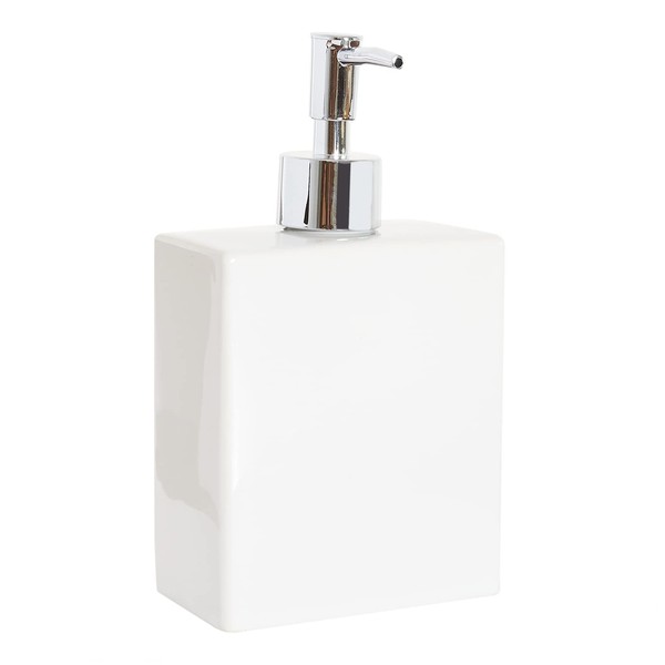 - SPACIOUS WHITE CERAMIC DISPENSER: With space for up to 550ml of liquid soap, this sturdy dispenser has a stainless-steel pump that won’t rust or break easily.