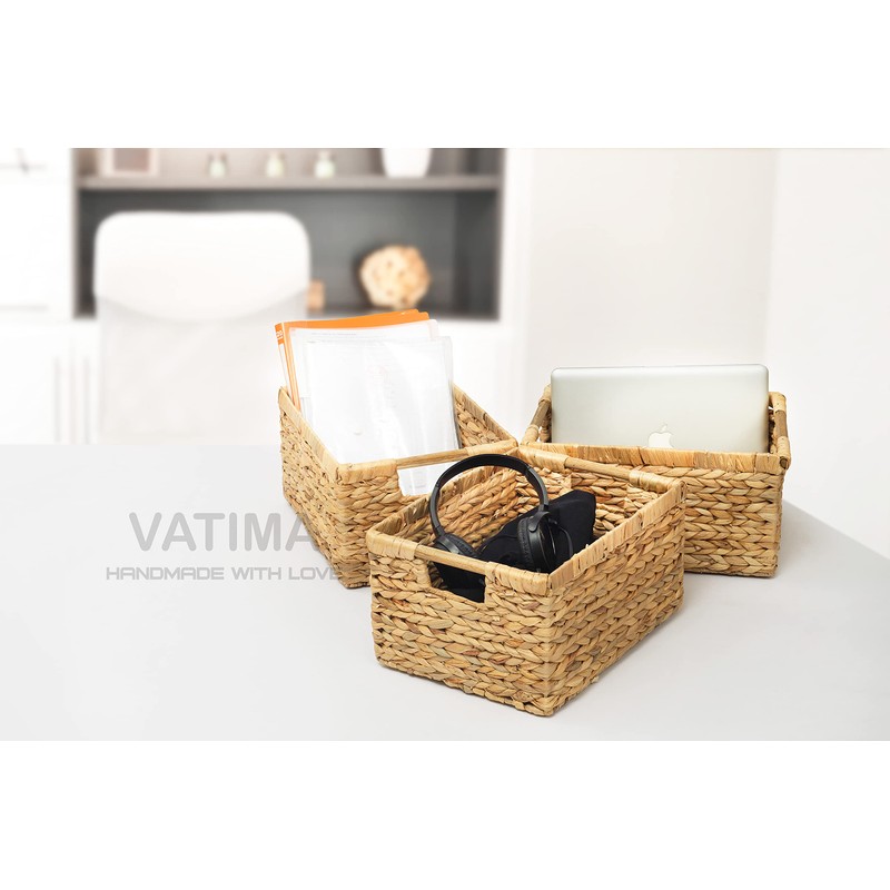 - ✅ Wicker Baskets - Whether it be by way of pure decor, storage, or organization for kitchen, pantry, or bathroom. This natural Water Hyacinth basket suit your home in every way. The rectangular storage basket is great for magazines, games, pet toys, media, household items.