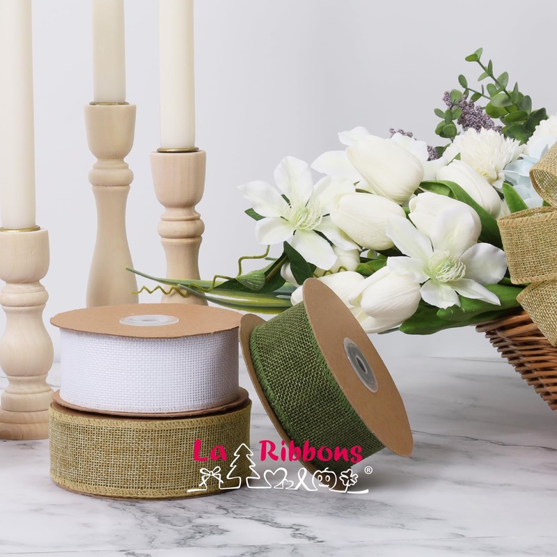 LaRibbons Burlap Ribbon Wired Edge, 1-1/2 Inch x 12 Yards, Natural Burlap Ribbon for Wreath, Bows, Gift Wrapping, Christmas Tree Decoration