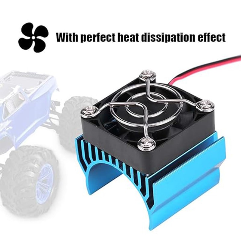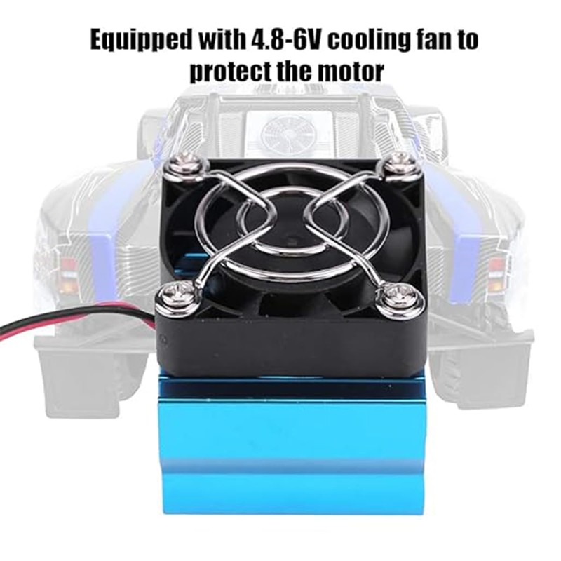 PREVENTS OVERHEATING This heat sink with its high quality fan keeps your engine cool even during demanding RC races. It dissipates heat efficiently from the engine, preventing overheating and ensuring consistent performance. Perfect for continuous use in harsh conditions. High Quality Materials The heat sink made of durable aluminum dissipates heat effectively while ensuring structural stability. The integrated fan is ball bearing mounted, ensuring more efficient airflow, longer life and less maintenance. Universal Fit This heat sink is compatible with all motors with an outer diameter of 36mm, including common brush and brushless motors such as 540/550 and 3650/3660/3674. It is versatile and can be easily integrated into a variety of RC vehicles, from off-road buggies to racing cars. Easy power supply: The fan is powered directly from the receiver, eliminating the need for additional power supplies or complex wiring. This makes the installation process quick and convenient, so you can start racing again quickly and without unnecessary complications. ENHANCED PERFORMANCE Thanks to its efficient cooling properties, this heatsink fan combination ensures that your RC motor maintains high performance for a long time. The fan provides excellent airflow, cools your engine more effectively than conventional fans and ensures long-term operation without overheating problems.