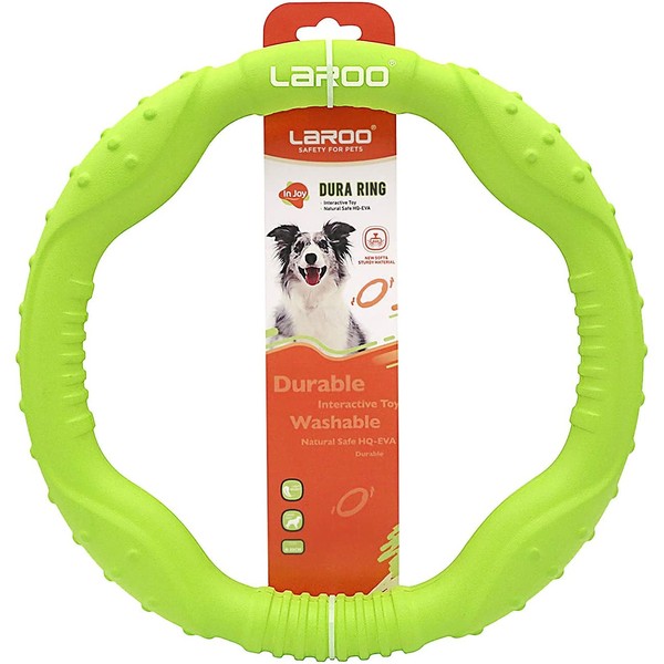 - 【INTERACTIVE DOG RING TOY FOR ALL DOGS】 LaRoo tough dog toys is suitable interactive toy for throwing, catching, retrieving games, tug of war, and chewing with dogs. Our indestructible large dog tug toy can be used as dog flying disc which allowed you and your pet to have a great fun day in your yard, pool, or park. This dog teething toys consists of aerodynamics and ring design to make it toss and be picked up easily.