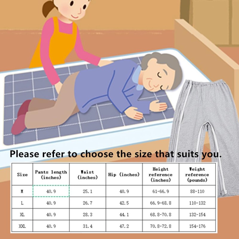 - 【Wide range of uses】This pair of nursing pants is suitable for bedridden patients,the elderly, people with limited mobility,postoperative nursing rehabilitation,leg injuries,and people in wheelchairs.It is convenient for various nursing operations and is conducive to the early recovery of patients.