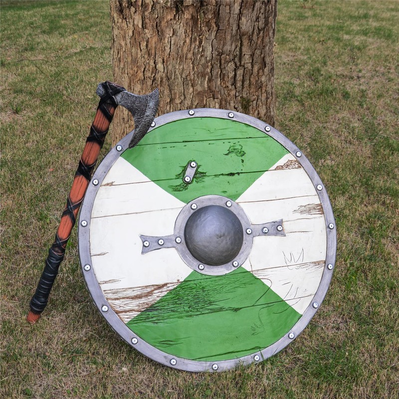 LarpGears Medieval Foam Viking Shield 23" with Foam Viking Axe 25" Props Set for Halloween Costume, Cosplay and LARP Events