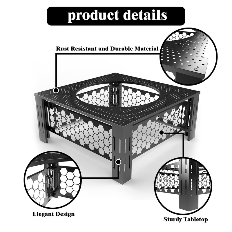 - Sturdy Tabletop: Our fire pit surround tabletop made of quality metal, thick material makes it sturdy and durable