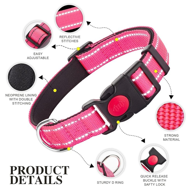 - REFLECTIVE STITCHING - Each collar incorporates 360° reflective stitching, enhancing visibility during early morning or evening walks in low-light conditions.