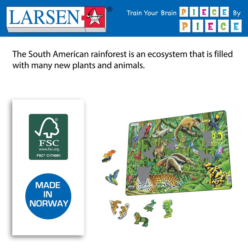 Larsen FH10 The Lush South American Rainforest Jigsaw Puzzle für Kinder - 70 Teile | Lern- und Spaßpuzzle für Kinder ab 6 Jahren Rahmenpuzzles | Hergestellt in Norwegen