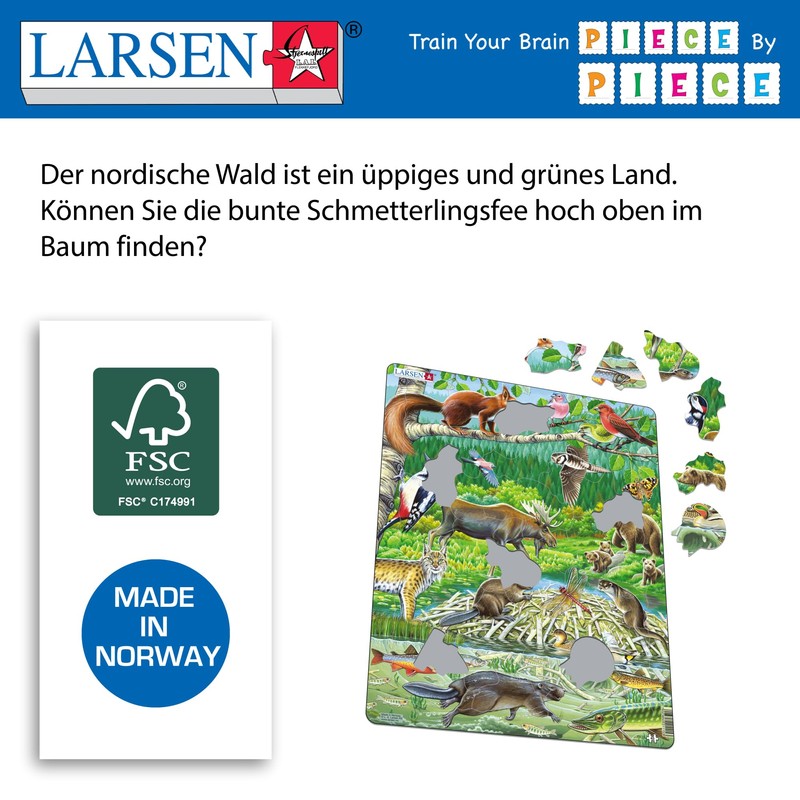 Larsen FH15 A Summer Day in a Nordic Forest Jigsaw Puzzle for Children Ages 4 and Up - 45 Pieces |Educational & Fun Puzzle for Boys & Girls | Boxless Tray & Frame Included