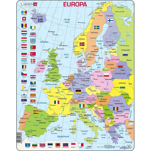 Larsen K2 Political Map of Europe, Frame Puzzle with 48 Pieces
