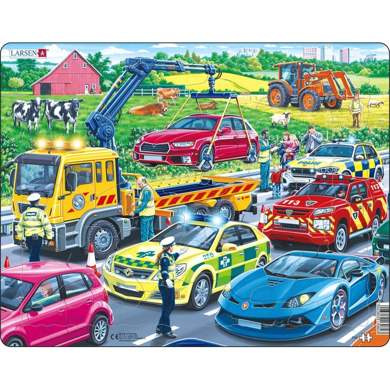 Larsen PG3 Rescue Vehicles on the Highway, 26 Piece Boxless Tray & Frame Jigsaw Puzzle