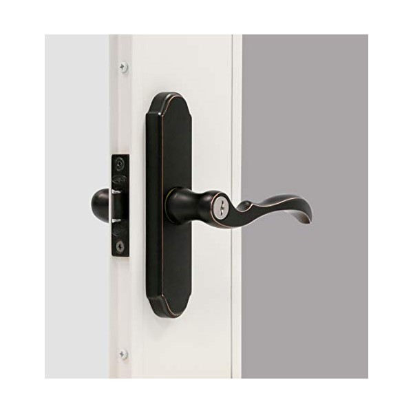 - Matching interior and exterior levers with built-in keyed lock
