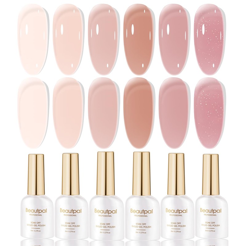 Larvall Beautpal Nude Gel Polish Set Milky Nude Sheer Pink Jelly Gel Polish Nail Kit Soak Off UV Translucent Nail Polish Gel 6PCS 8ml | Larvall