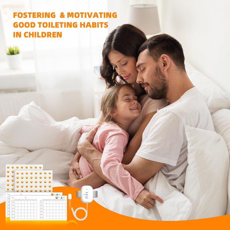 - Lightweight design & Includes Training Tools: The bedwetting alarm clock is designed to be compact and lightweight, easy to carry and comfortable for your child to wear while sleeping. Motivational progress tracking, contains reward chart and stickers to track progress and motivate your child to achieve a dry night sleep.