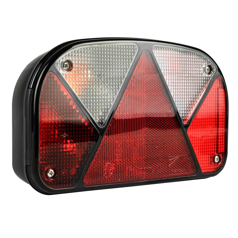 - 6 Funktionen: Schlusslicht, Bremslicht, Blinker, Dreieckrückstrahler, Nebelschlussleuchte, Kennzeichenbeleuchtung seitlich zur Mitte