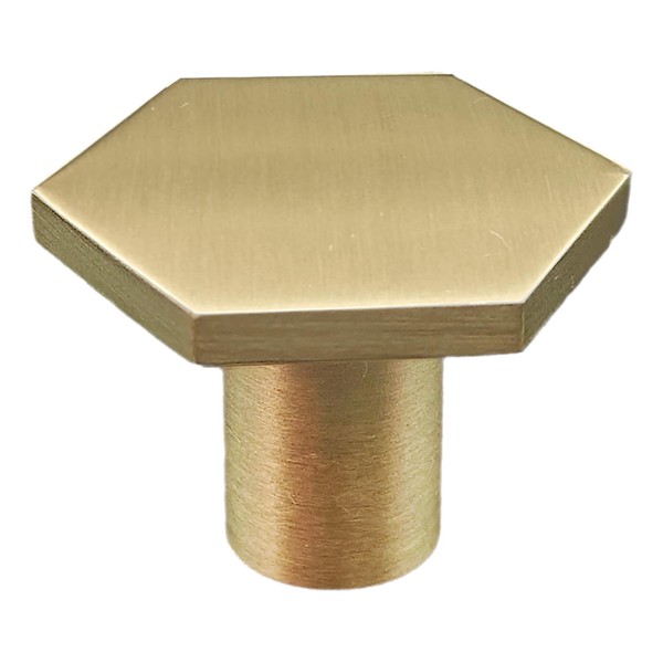 LASAMOLL Solid Brushed Brass Kitchen Cabinet Hardware Modern Handles Knobs Drawer Knobs Cupboard Drawer Pulls (4, Hexagon)