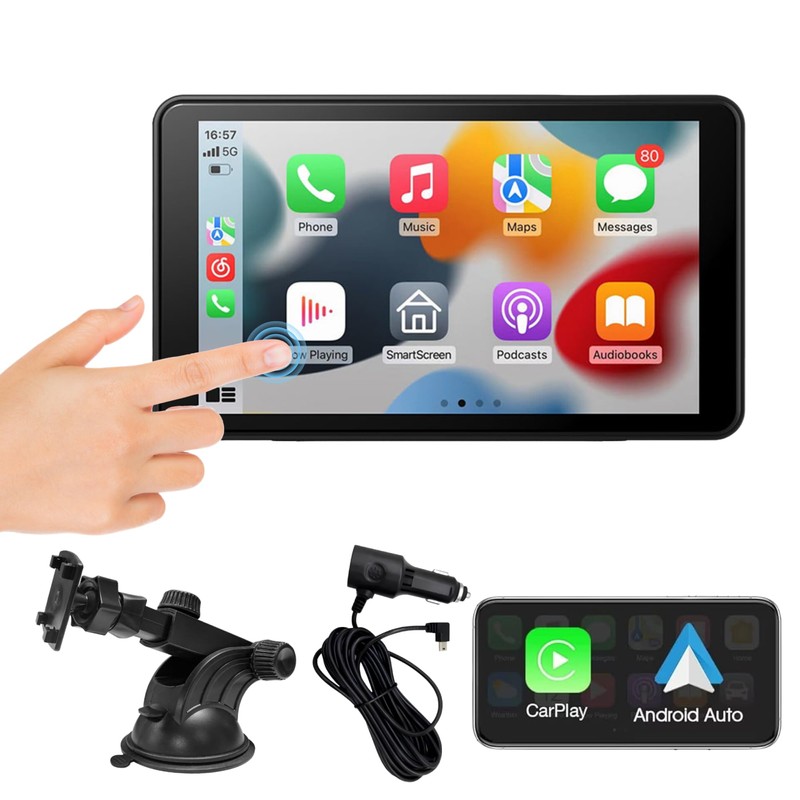 Laser 7-inch Portable Wireless CarPlay/Android Auto Touchscreen, Real-Time Navigation, Voice Control, Bluetooth and Wi-Fi, IPS Display - Supports Bluetooth Transmitter and Apple CarPlay Integration