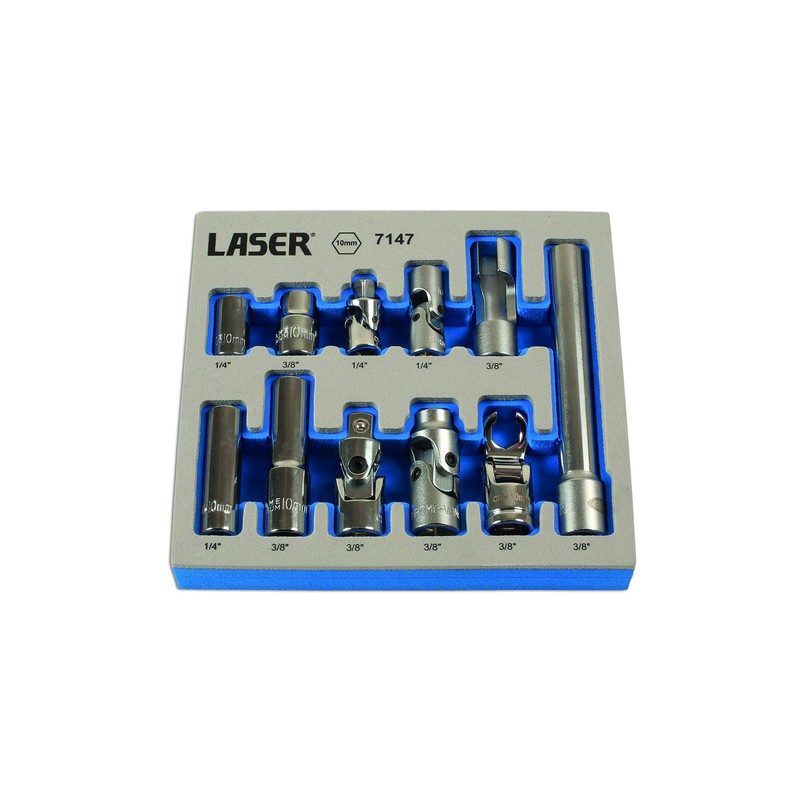 - 3/8"D x 10mm x single Hex (6pt) sockets: standard, deep, extra deep (120mm long), universal joint (Bi-Hex), difficult access, flexible crows foot.