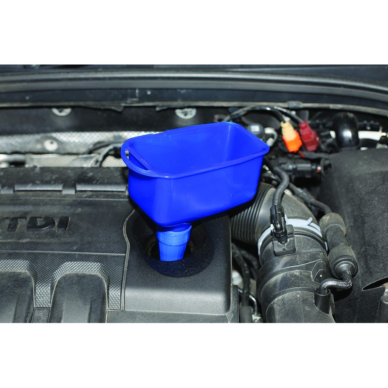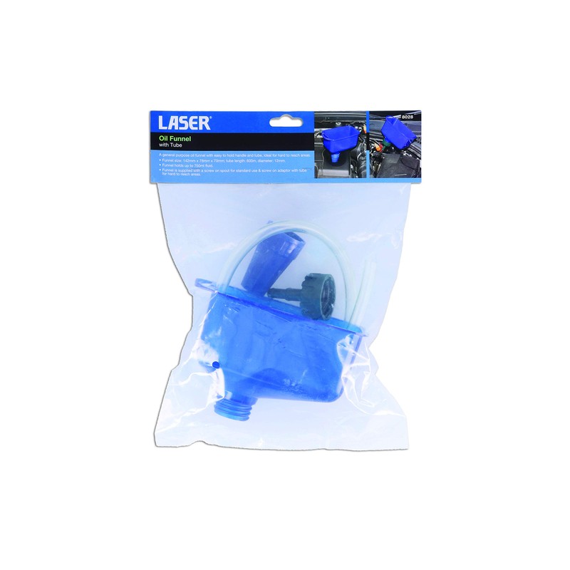 • Funnel is supplied with a screw on spout for standard use and screw on adaptor with tube for hard to reach areas