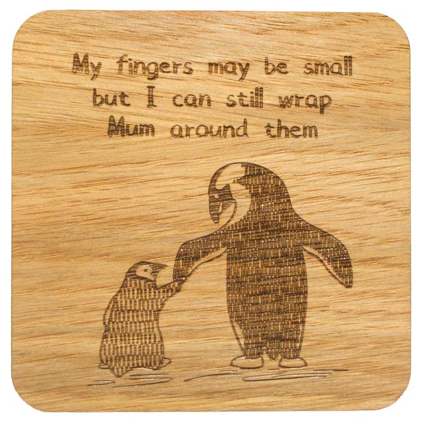 - Lovely gift for Mummy, with a cute penguin design laser engraved on 4mm thick Oak Veneer