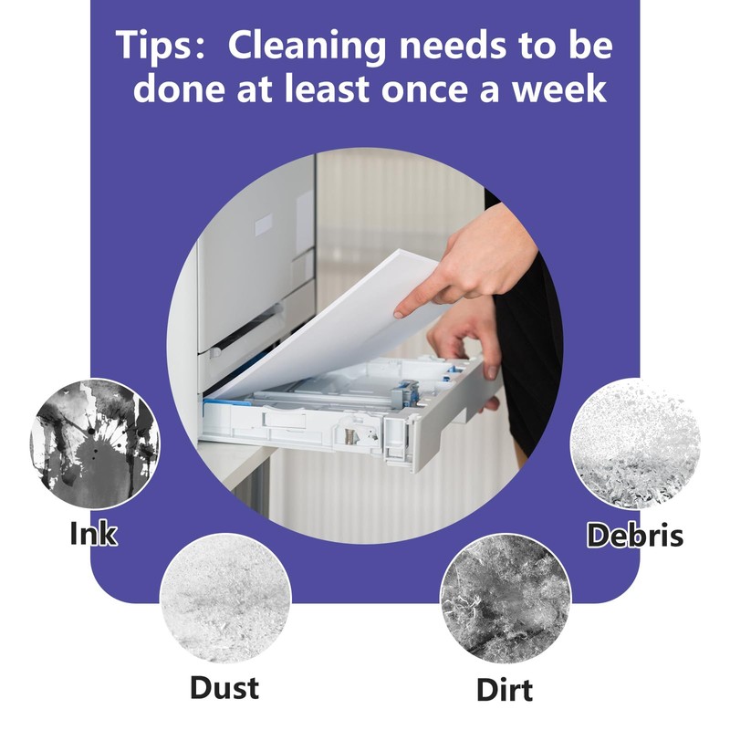 - 【Easy to Use】 If there are any dirt particles or ghosting effects on the paper, you can use the cleaning sheet to trap the dirt along the paper path inside the printer. Just load the cleaning sheet into the printer as you would with standard paper. Cleaning needs to be done at least once a week and can help keep your printer in the best condition possible.
