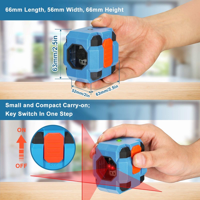 - ๐ ๏ธ๐๐๐จ๐ฎ ๐๐ฅ๐๐ง๐๐ฉ๐๐ค๐ฃ -- On/Off Switch makes laser leveling operating easier. Push up/down to control the laser lines, you can use to hang pictures or decorate your wall. Compact and lightweight for easy gripping in one hand, it is handy and perfect for DIY projects. Portable to put into bag or pocket, and convenient to put on anywhere.