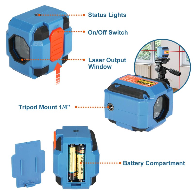 - ๐ ๏ธ๐พ๐ง๐ค๐จ๐จ ๐๐๐ฃ๐๐จ ๐๐ค๐๐ -- Horizontal and vertical red beam laser leveler could lock the vertical and horizontal lines of the target projects quickly, working perfect indoors. The cross line laser can easily project a red cross line at a wide angle of 120ยฐto assist your leveling jobs, which make sure accuracy.