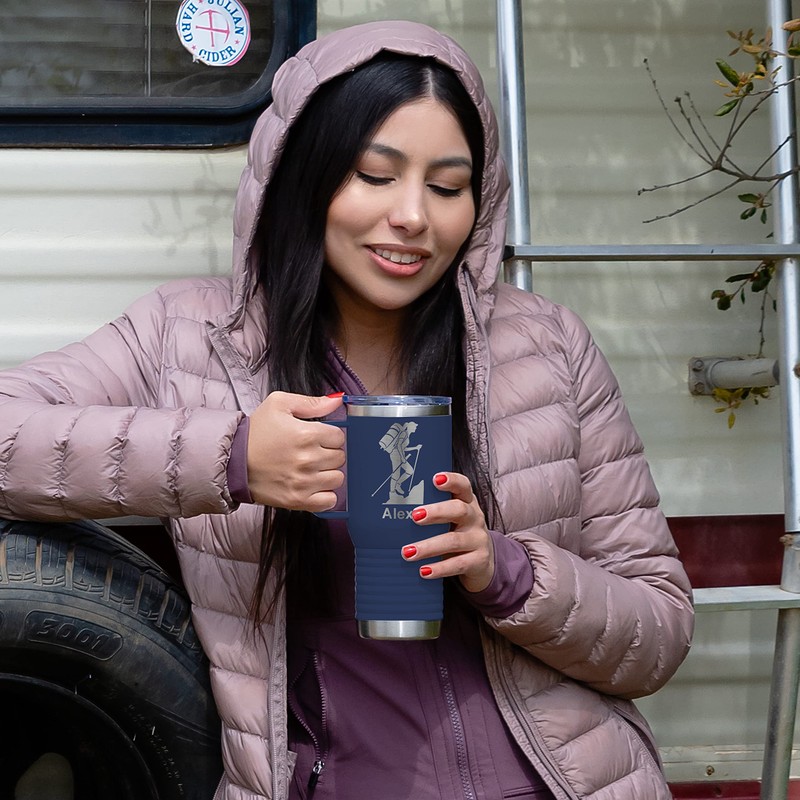 - Personalized just the way you want it! Each travel mug is laser engraved with the image that you see in the photo along with your own name or custom text.