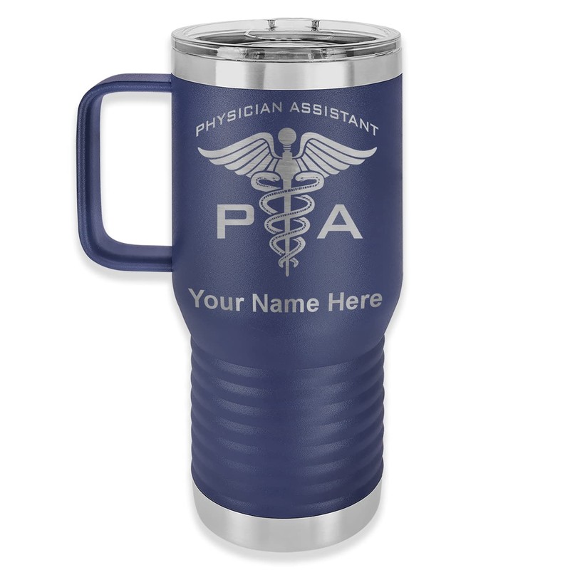 LaserGram 20oz Vacuum Insulated Travel Mug with Handle, PA Physician Assistant, Personalized Engraving Included (Navy Blue)