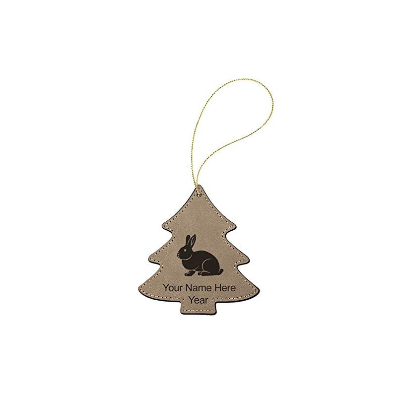LaserGram Personalized Christmas Ornament, Rabbit, Faux Leather, Custom Laser Engraved Gift Idea (Tree Shape, Light Brown)